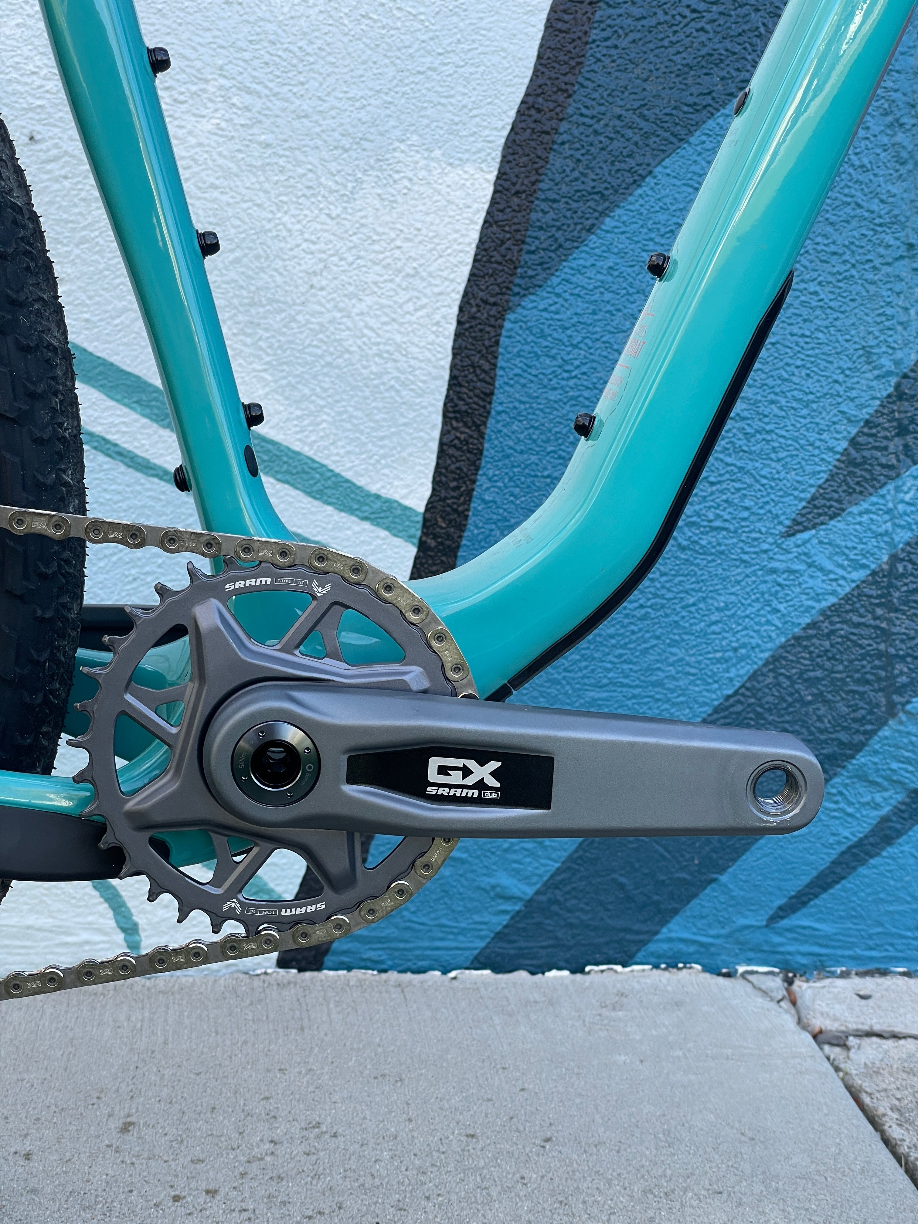The Cutthroat C GX Eagle AXS is an exceptionally capable carbon bikepacking bike. Inspired by the long days and mixed terrain of the Tour Divide, we gave it a lightweight carbon frame with our Class 5™ VRS (vibration reduction system) and drop-bar mountain bike geometry for a ride that fights fatigue. We also equipped Cutthroat with rack mounts and plenty of space for bikepacking bags so you can carry your food, water, and shelter with ease. The SRAM Rival - GX AXS Transmission drivetrain delivers smooth, effortless shifting and massive gear range.